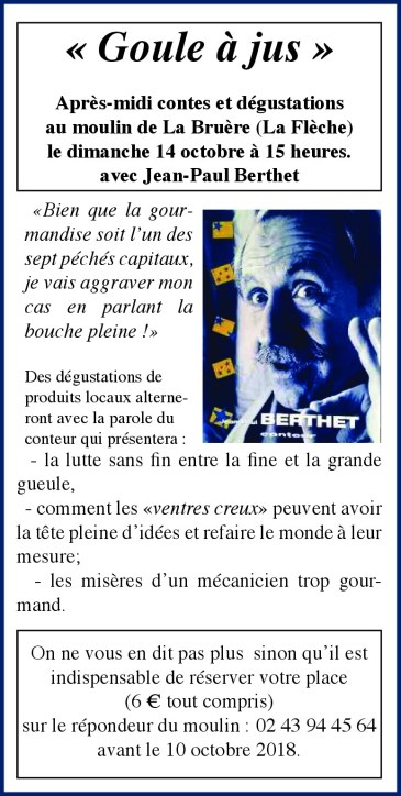 Goule-à-jus-à-la-Bruere-14-octobre-2018 Publié le 28 septembre 2018 dans 1/ Actualités SarthePleine résolution (775 × 1538) ← Précédent Suivant →