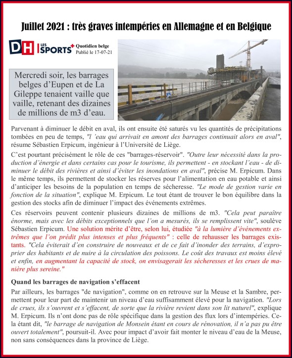 Barrages à réhausser suite intempéries Belgique Publié le 18 juillet 2021 dans 4/ Actualités France / MondePleine résolution (2470 × 3033) ← Précédent Suivant →
